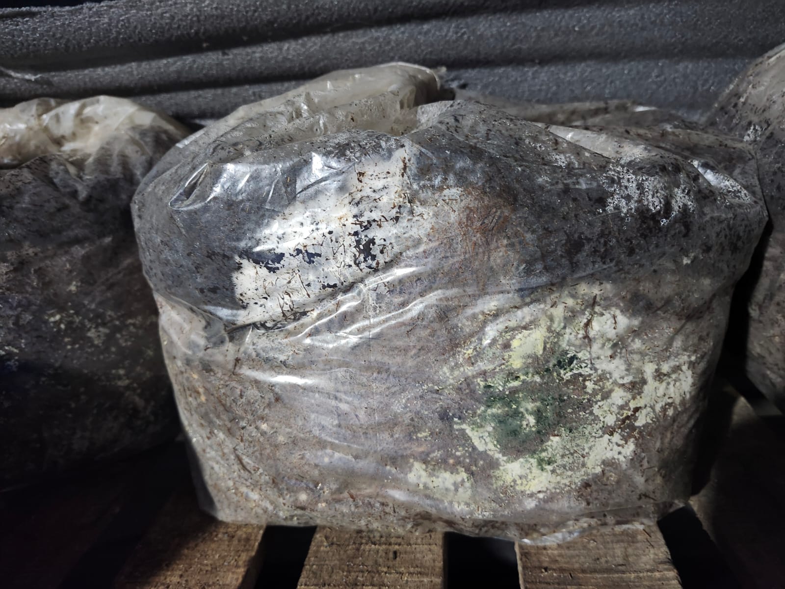 버섯 봉지가 오염됐다고 사진을 보내온다.