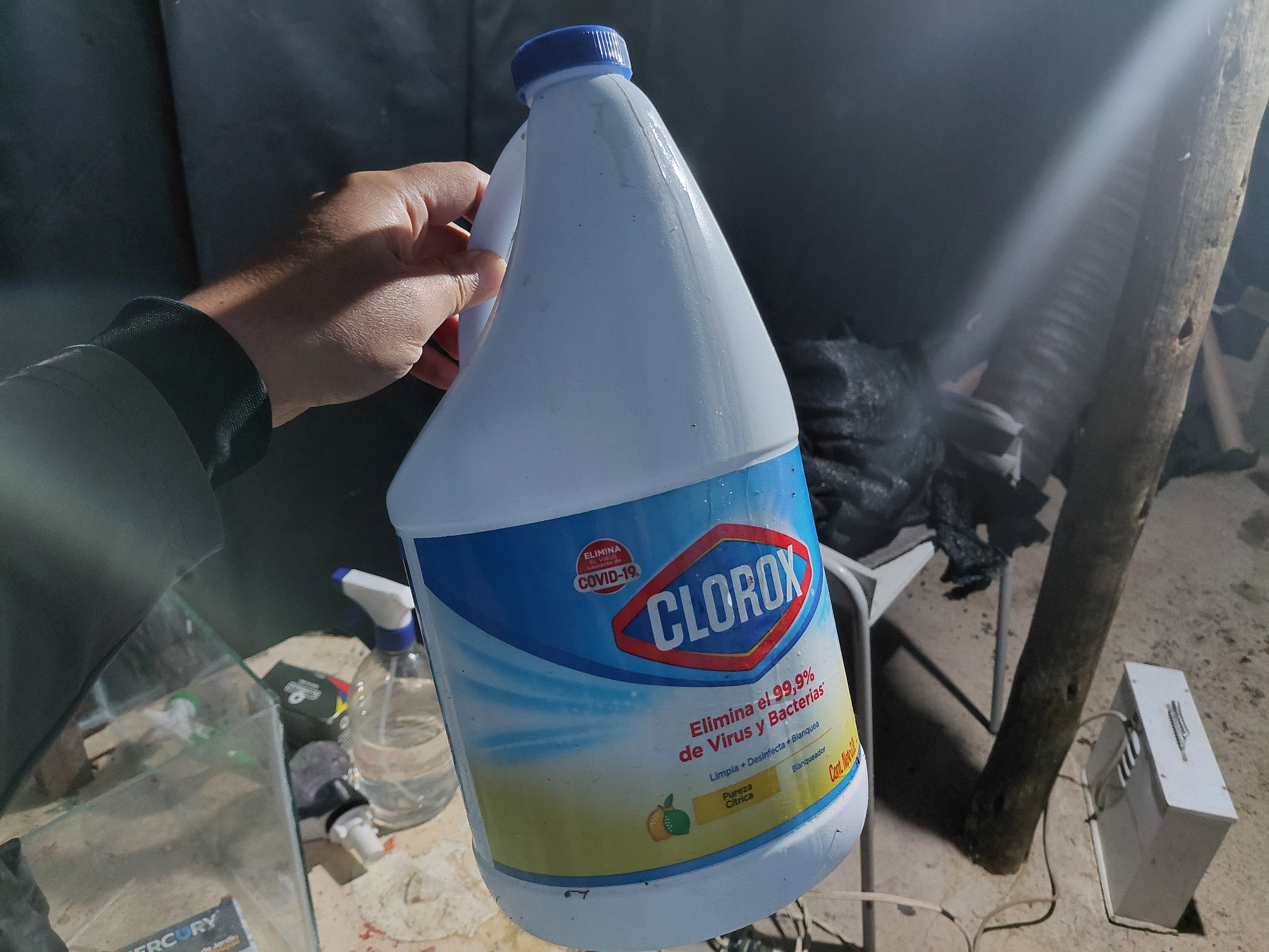 한손에 Clorox통을 들고 있다. 어찌 할 건지 이미 생각을 하고 왔는가보다.