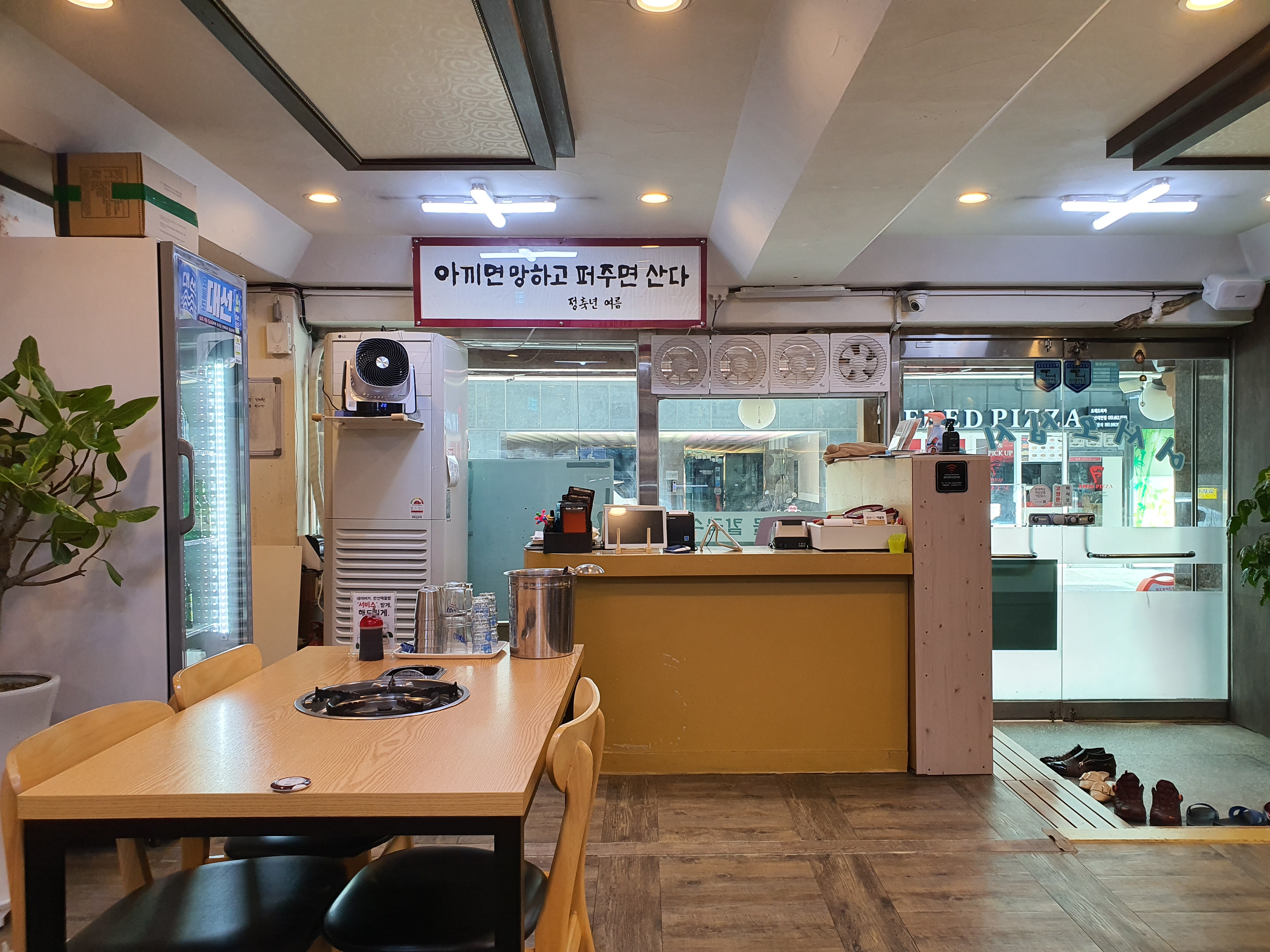 음료수를 캔으로 들여오는 걸 보니 앞에 붙여둔 "아끼면 망하고 퍼주면 산다"는 액자는 내 기준으로 거짓말이다.