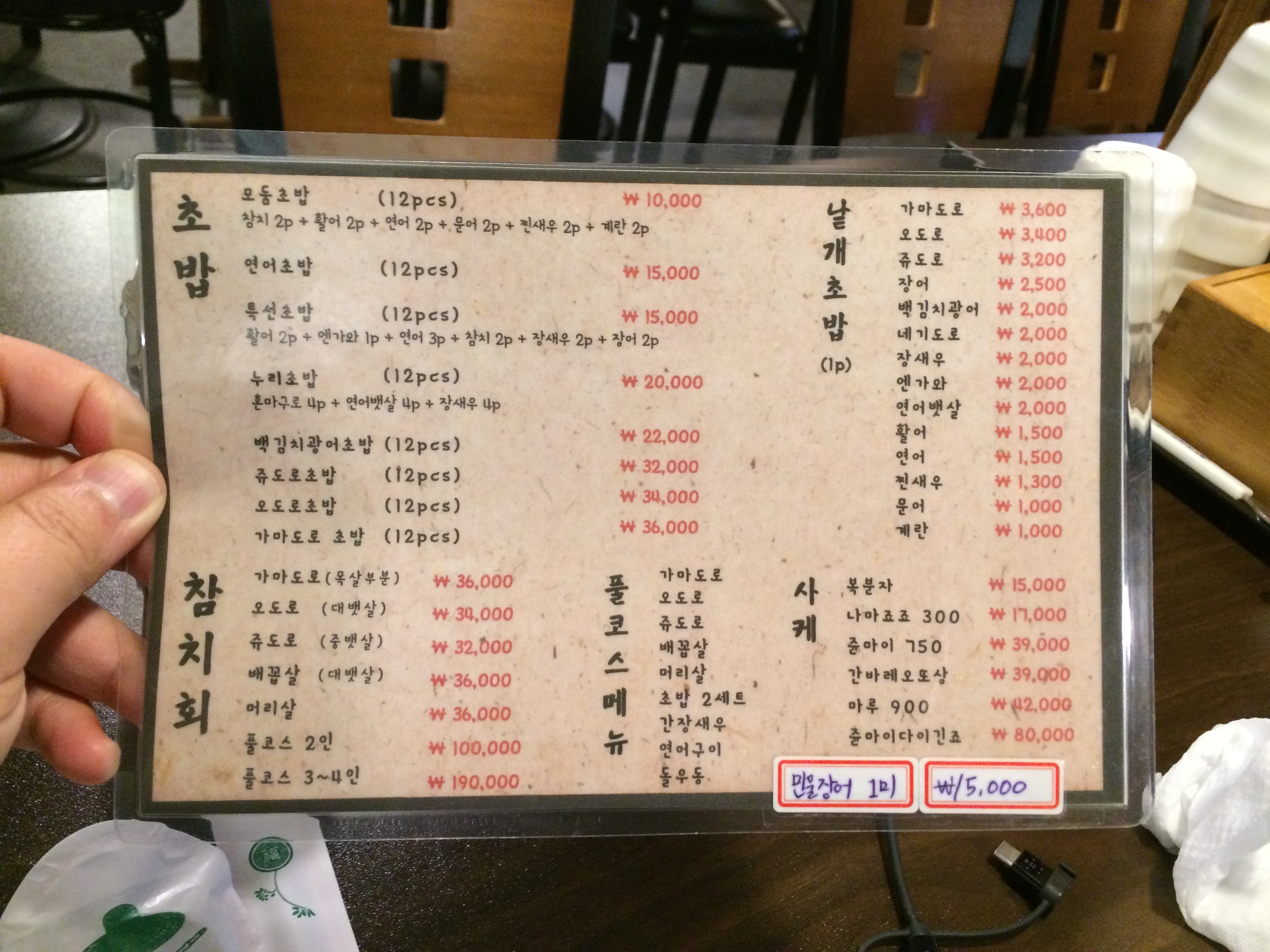 메뉴판 구성을 보면 사람들이 모둠초밥이나 특선초밥을 많이 시킬 것 같다.