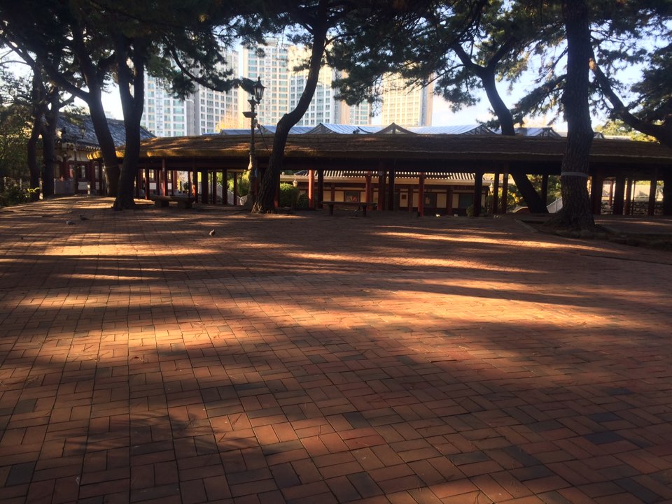 수영야류를 공연하고 전수하는 공연장 용도로 지어진 곳인데 지붕을 만들어둬서 비가 오는 날도 이 안을 걷기가 좋다. 이정도 넓이의 평평한 공간이 주변에 없어서 보통 동네 어르신들이 걷기 운동을 많이 하신다. 나도 수련 전에 이 안에서 걷고 뛰며 체온을 높인다.